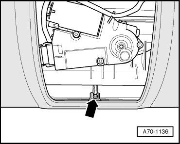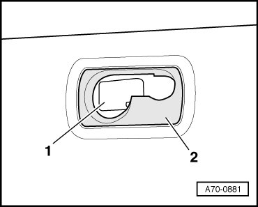- Move cover cap - 1 - to side and remove screw behind on partition grille mount - 2 -.