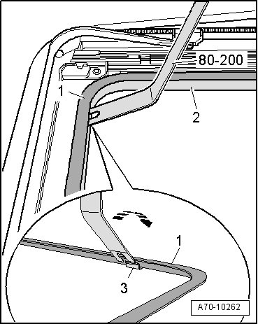 - Let (80-200) slide along between sunroof opening and headliner - 2 - mounting bracket - 1 - until it locates one of the 15 clips - 3 -.