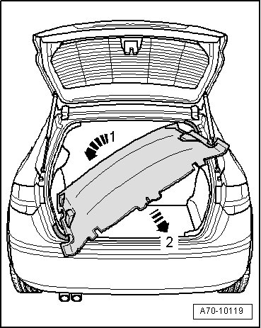 - Pull headliner out through rear lid opening - arrow 2 -.