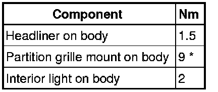 • Threaded holes on roof grab handle and sun visors must be cleaned of all locking compound residues after removing. Otherwise, new screws could lock up when installed and shear off when removed again.