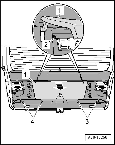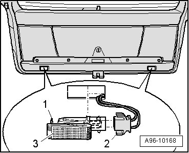 - Press retainer tab - 1 - with flat screwdriver and pry out luggage compartment light - 3 -.