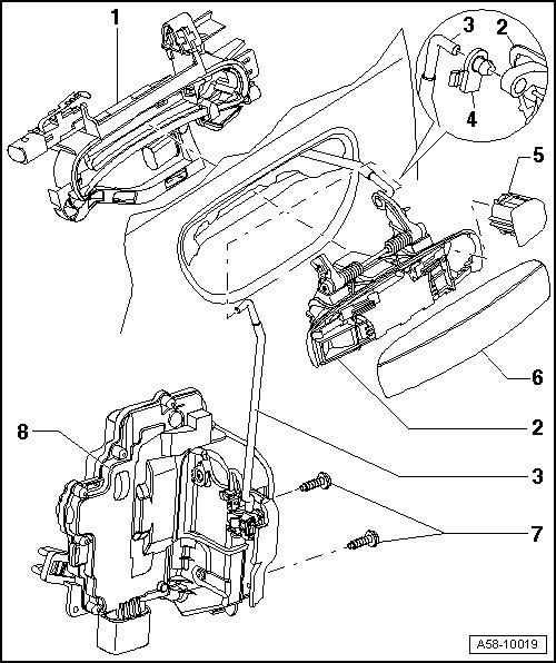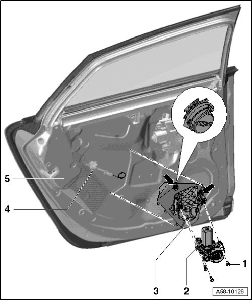 2 - Driver Door Closing Assist Motor -V302- or Front Passenger Closing Assist Motor -V303- (only models with closing assist)