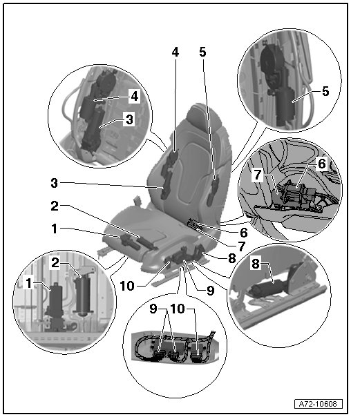 • Passenger side: Front Passenger Seat Angle Adjustment Motor -V244-