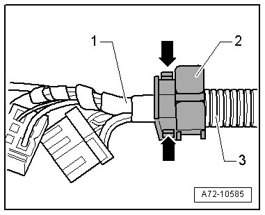- Remove cable clip - 2 - from corrugated tube - 3 -.