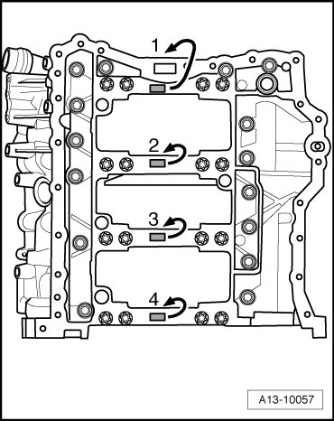 On engines through no. AUK 028 000 or BKH 033 000 another allocation of letters on guide frame to bearing shell color applies to bearing 1 (front).