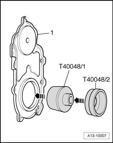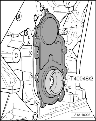 - Place the sealing flange with inserted Pull Sleeve (T40048/2) onto crankshaft.