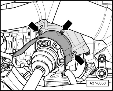 Guide control arm and control arm must not hang free. Tie up both control arms on wheel bearing housing - arrows - as shown in illustration.
