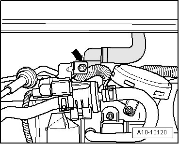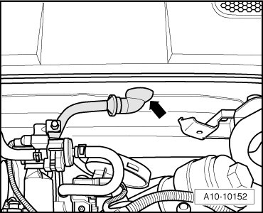 - Remove the brake booster vacuum hose - arrow - on the plenum chamber bulkhead.