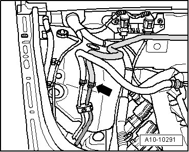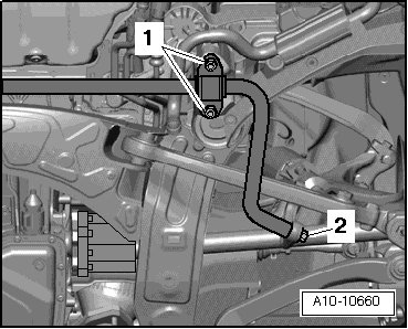 - Unbolt hydraulic pressure line - 2 - at power steering pump and set it aside on top of the longitudinal member.