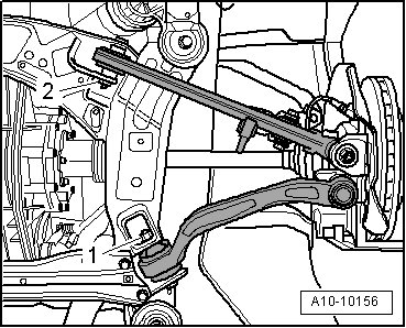 - Remove guide control arm - 1 - and control arm - 2 - on subframe.