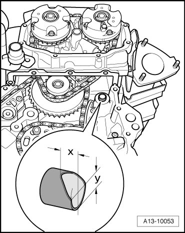 - Using for example a rotating plastic brush, remove sealant residue on cover for timing chain and on cylinder block and head.
