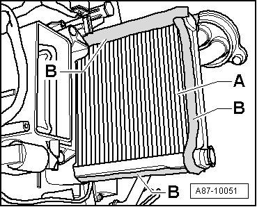 - Mark the assignment of coolant hoses - A - (supply to left heat exchanger) and - B - (supply to right heat exchanger).