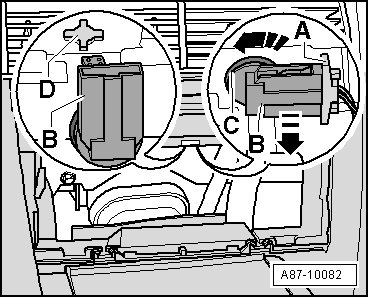 - Insert the Center Vent Temperature Sensor (G191)- B - on the proper side into A/C unit mount - D -.