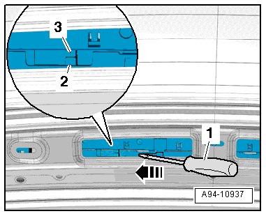 • To prevent the upper rear lid trim from breaking, it must not be colder than 20 °C (68 °F). Warm the trim slightly with a hot air gun if necessary. This applies especially to older vehicles.