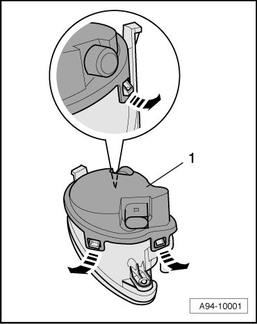 - Remove the fog lamp housing - 1 - from the bumper cover.
