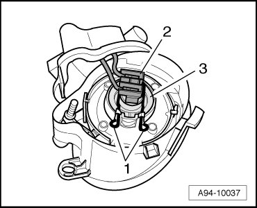 - Disengage wire clamp - 1 - and remove bulb - 3 - from housing.