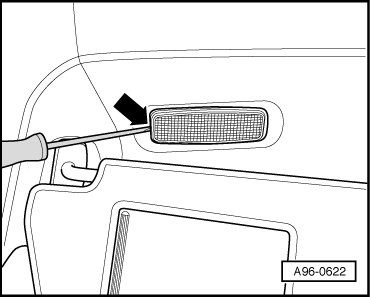 - Carefully pry out vanity mirror illumination using a flat screwdriver at recess - arrow -.