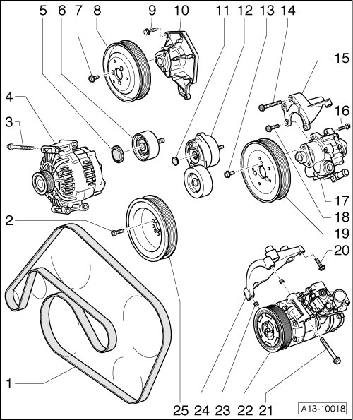 • Removing and installing, refer to => [ Ribbed Belt ] Ribbed Belt