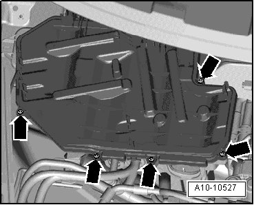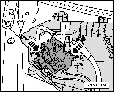 - Release clips - arrows - and remove main fuse panel - 1 - from E-Box right plenum chamber.