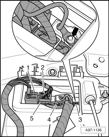 - Disconnect the multi-pin connectors - 1 through 5 -.