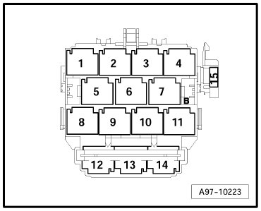 15 - Front Passenger's Power Seat Adjustment Circuit Breaker 1 -S46- (lumbar support only - 10A) (not applicable from model year 2007)