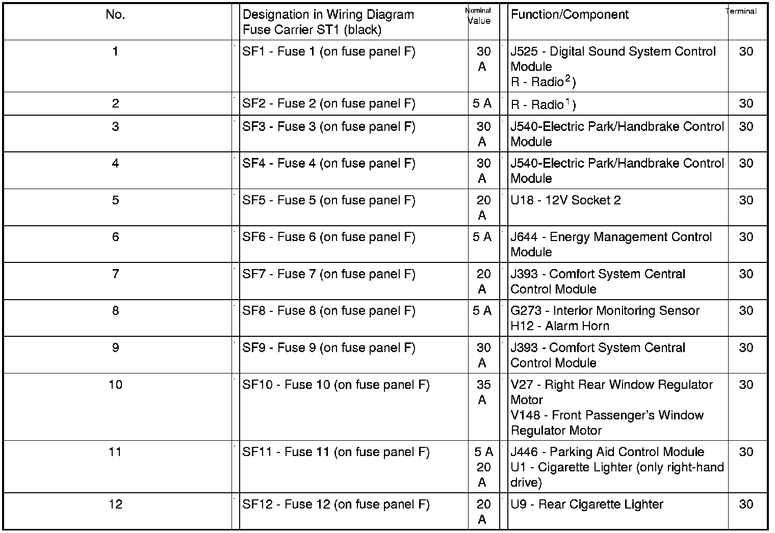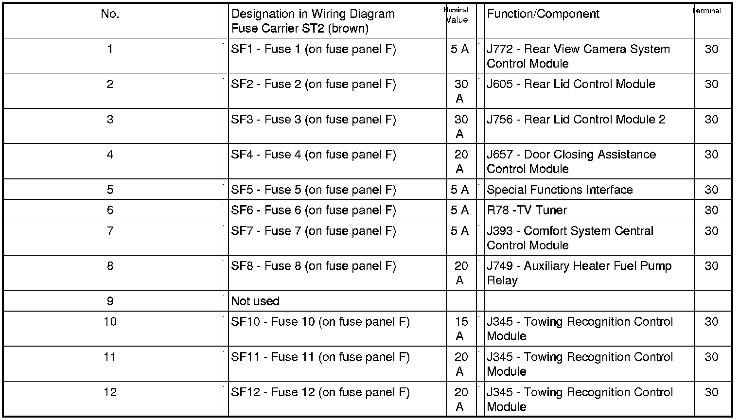 Position of Fuses On Fuse Panel, from MY 2009