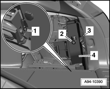- Unclip harness connectors - 4 - and bracket - 3 - for additional fuses at relay and fuse panel.
