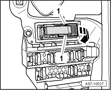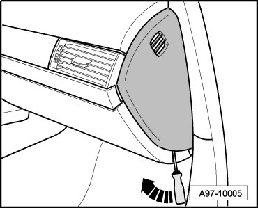 - Pry off right cover from instrument panel using a screwdriver - arrow -.