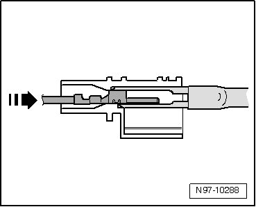 - Grasp contact at wire and push it gently into connector housing - arrow -.