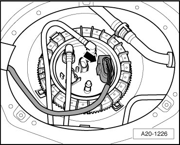 - Disconnect fuel line - arrow -.