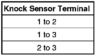 - or Knock Sensor (KS) 2 (G66) terminals 1 to 2, 2 to 3, and 1 to 3 for an internal short.