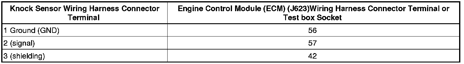 - Using a Multimeter , check the knock sensor electrical harness connector to the Engine Control Module (ECM) (J623) electrical harness connector for resistance.
