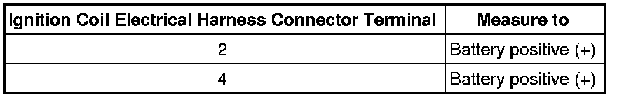 - Using a diode test lamp, check the Ignition Coil electrical harness connector terminals 2 to 3 for voltage.