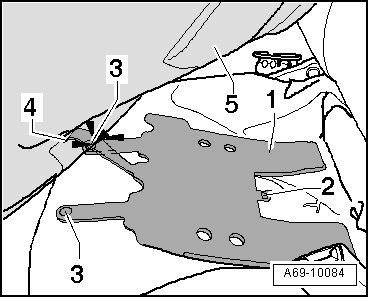 - Carefully pull seat occupied recognition mat - 1 - with upholstery - 5 - upward while guiding Seat Occupied Recognition Pressure Sensor (G452) and Seat Occupied Recognition Control Module (J706) through seat pan without disconnecting connectors.
