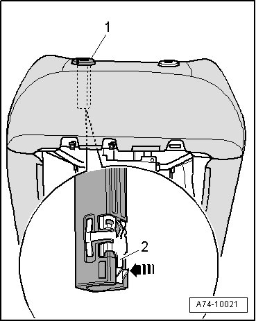 - Press release button - 2 - on headrest - 1 - until stop - arrow -.