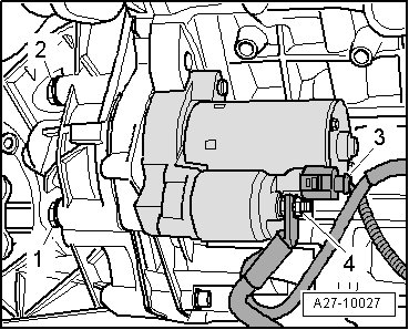 - Remove bolts - 1 - and - 4 - and remove starter.