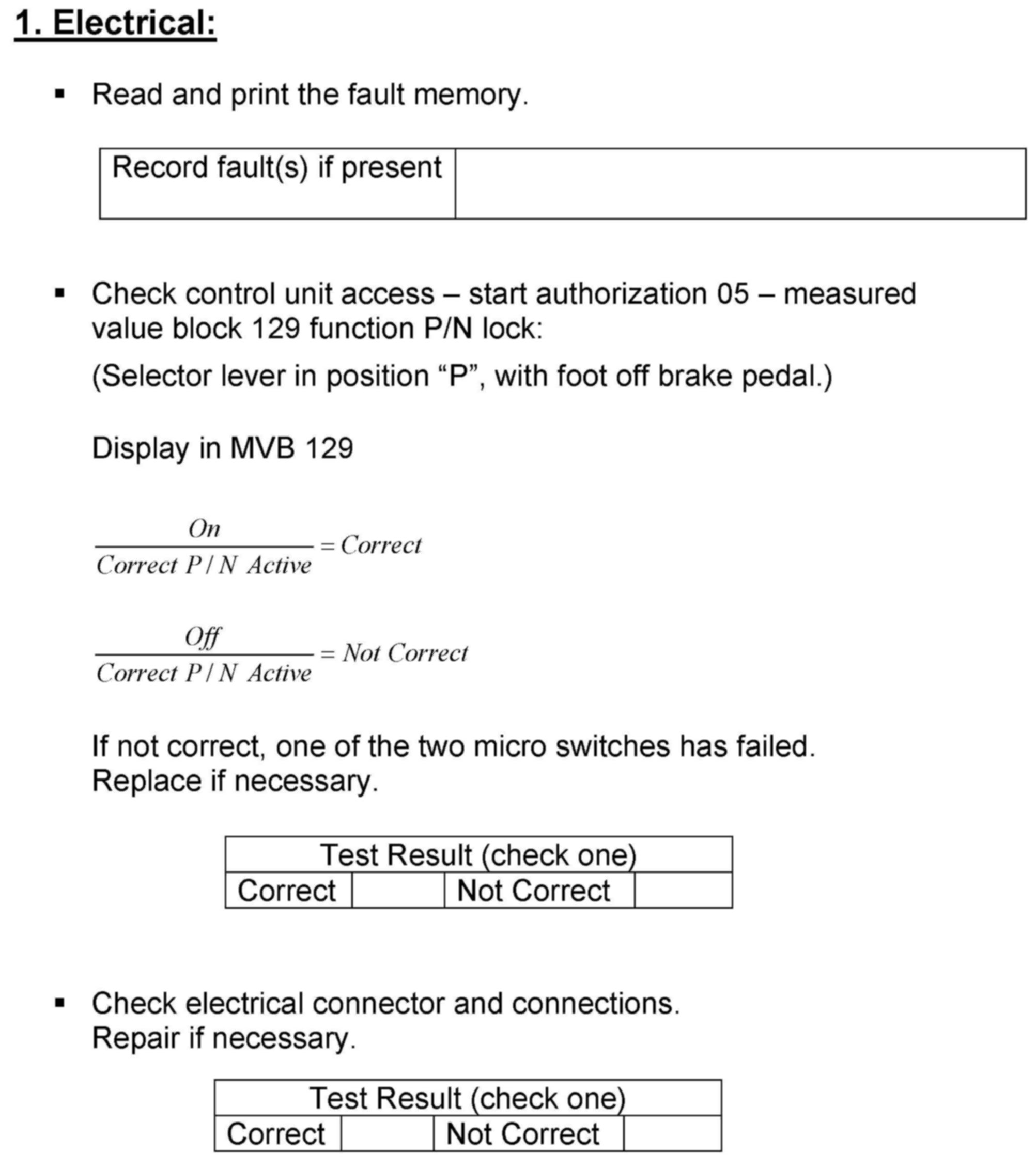 Tip: With all complaints in connection with the A6 selector mechanism, the checklist shown below must be completed.