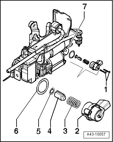 - Install the level control system solenoid - 2 - together with the spring and the anchor into the housing - 7 -.