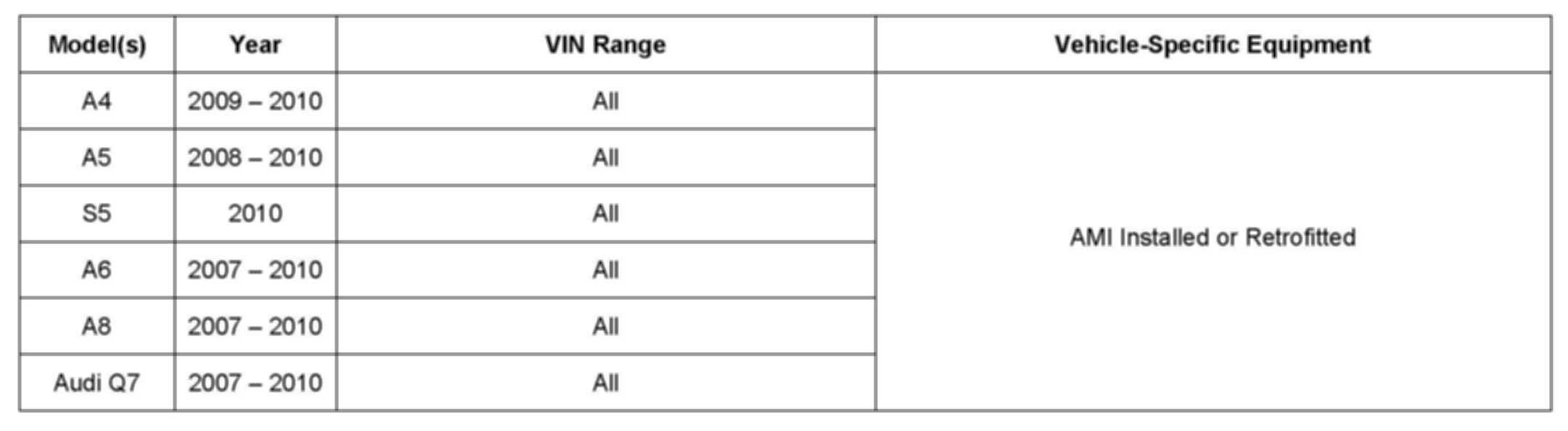 ^ TSB 2016513 91 Audi Music Interface (AMI): iPod-related complaints.