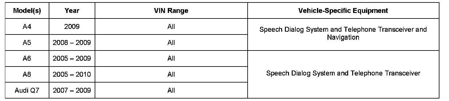 This TSB is informational only and not applicable to any Audi warranty, as it is already included in the control unit installation.