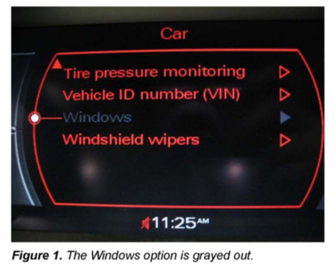The customer may report that a grayed-out Windows option is displayed in the MMI Car Settings menu.