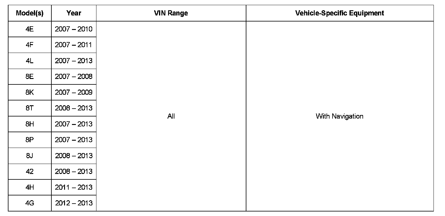 Vehicles with DVD-based Navigation Systems now have the Navigation DVD installed during production. To prevent theft of the DVD during transportation, the Eject button of the Navigation drive is disabled. The Navigation system itself, e.g. route guidance, functions as specified.