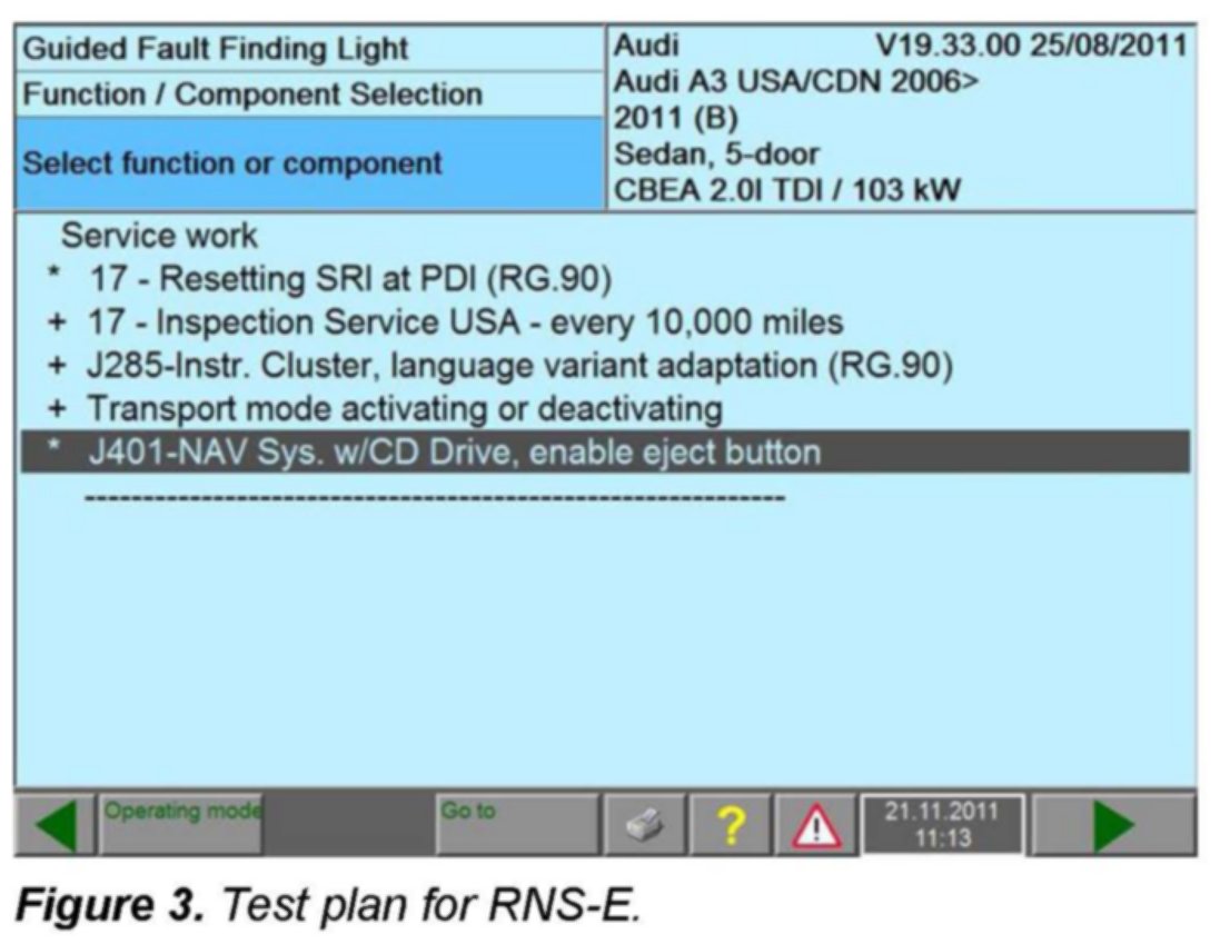 Through GFF, perform the test plan to enable the eject button through Function / Component Selection >> Service Work >> J401-NAV Sys. w/CD Drive, enable eject button.
