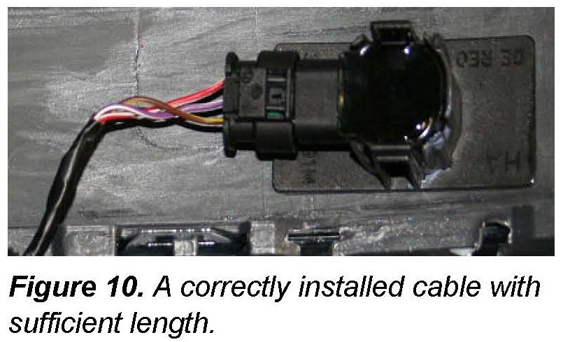 12. Check the cables in the bumper for damage and sufficient length. Cables that are too short can cause damage to the harness.