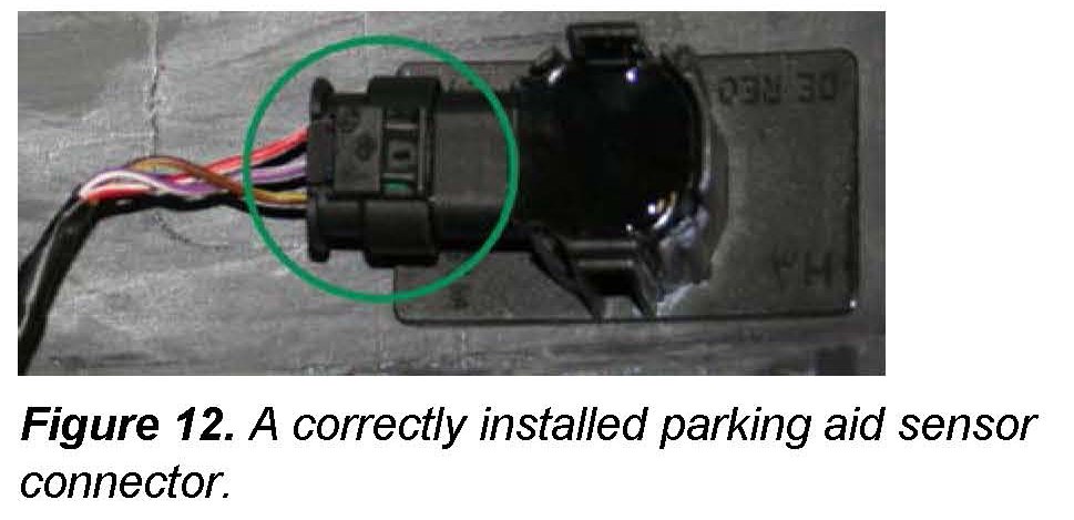 13. Check the connectors on the parking sensors and the socket box for correct installation. If the connectors are not installed properly, reinstall.