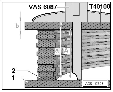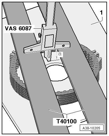 - With the (VAS 6087), measure sealing surface of the input shaft on the surface of the corrugated spring washer in the transmission housing.