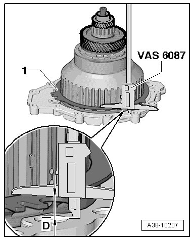 - Measure with the (VAS 6087) on the sealing surface of the input shaft and note the measurement - D -.