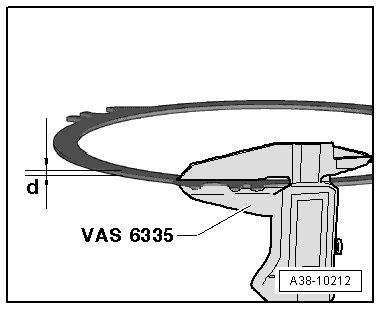 • Digital depth gauge (VAS 6087) must lie flush on both rulers (T40100) when measuring.