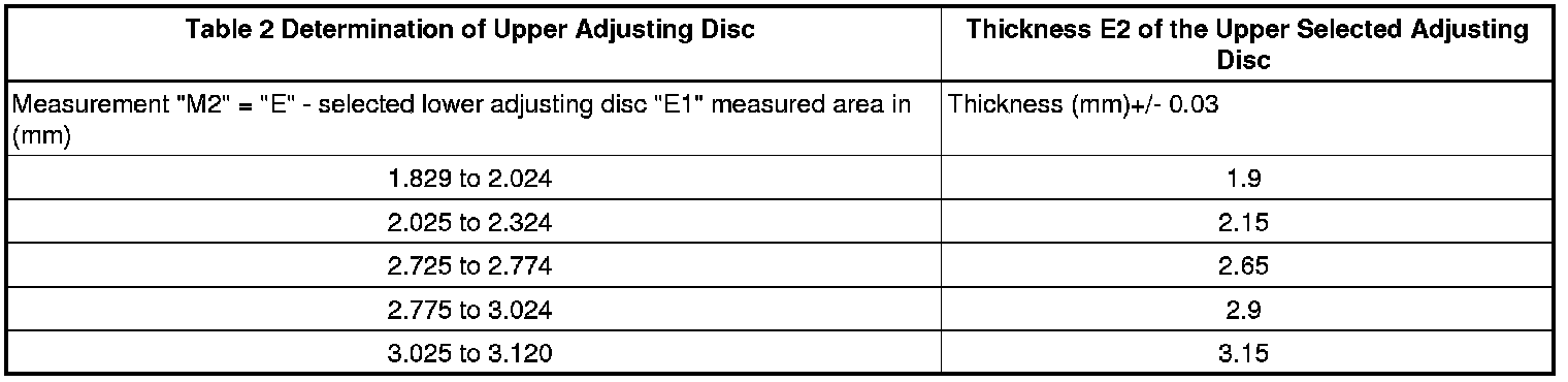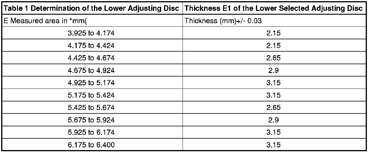 - Select thickness E1 from the next thinnest lower adjusting disc from table 1: