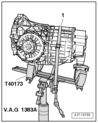 - Carefully raise transmission and bring into installation position using transmission support (T40173).